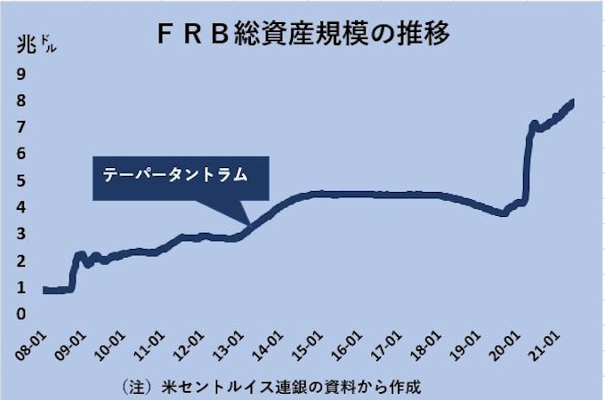 2013年5月に当時のバーナンキFRB (米連邦準備理事会)議長が市場関係者が想定していたよりも早いタイミングでテーパリングを示唆し、長期金利が急騰、株価は下落、新興国通貨の下落が起き、世界の金融市場が混乱しました。金融緩和から金融緩和縮小時の局面において、投資家の不安心理が先行したために起こったとされています。